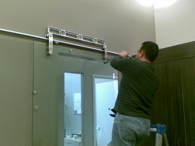 Install Sliding Frameless Glass Door at an office in Mississauga.