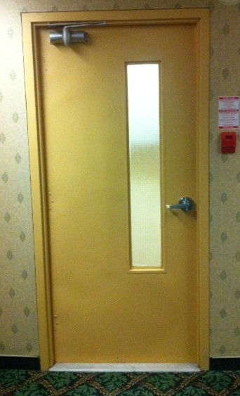 Install and repair hallow metal door with all hardware at a residential seniors building.