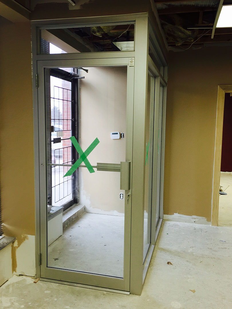 Fabricated and Installation a clear anodized aluminum vestibule with one door and safety tempered glass In Thornhill.