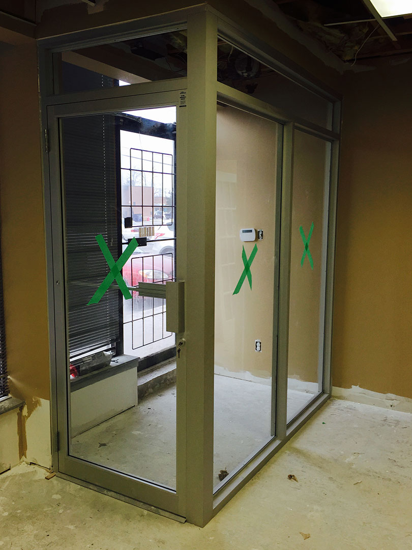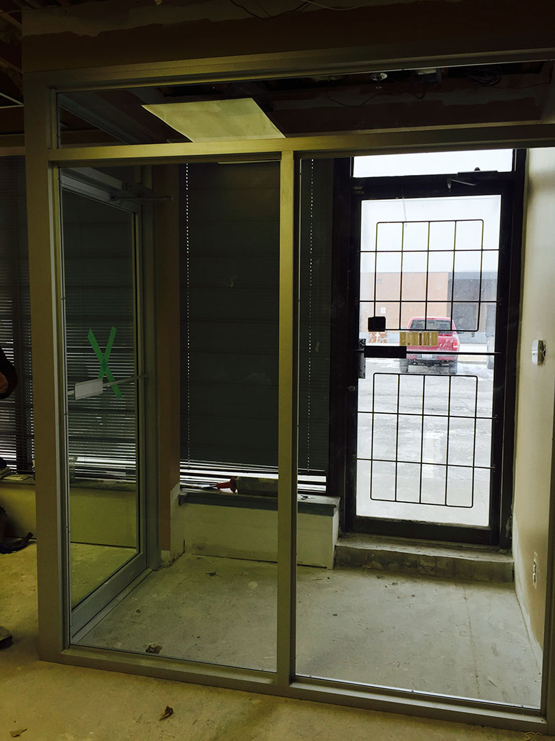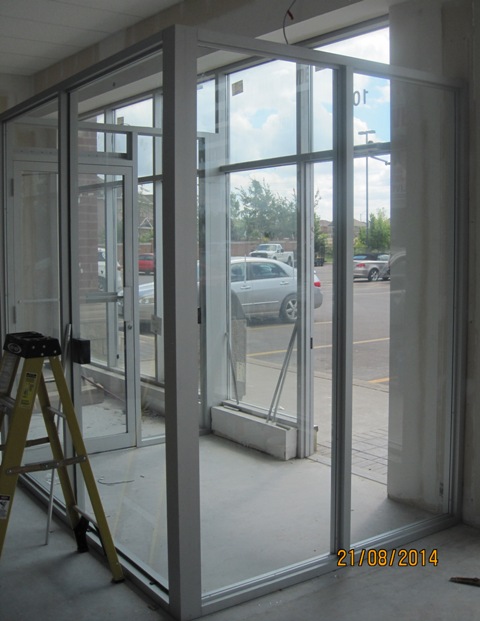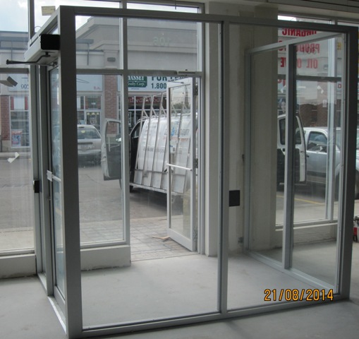 Install Aluminum Vestibule with safety glass and automatic door opener in a pharmacy in Brampton